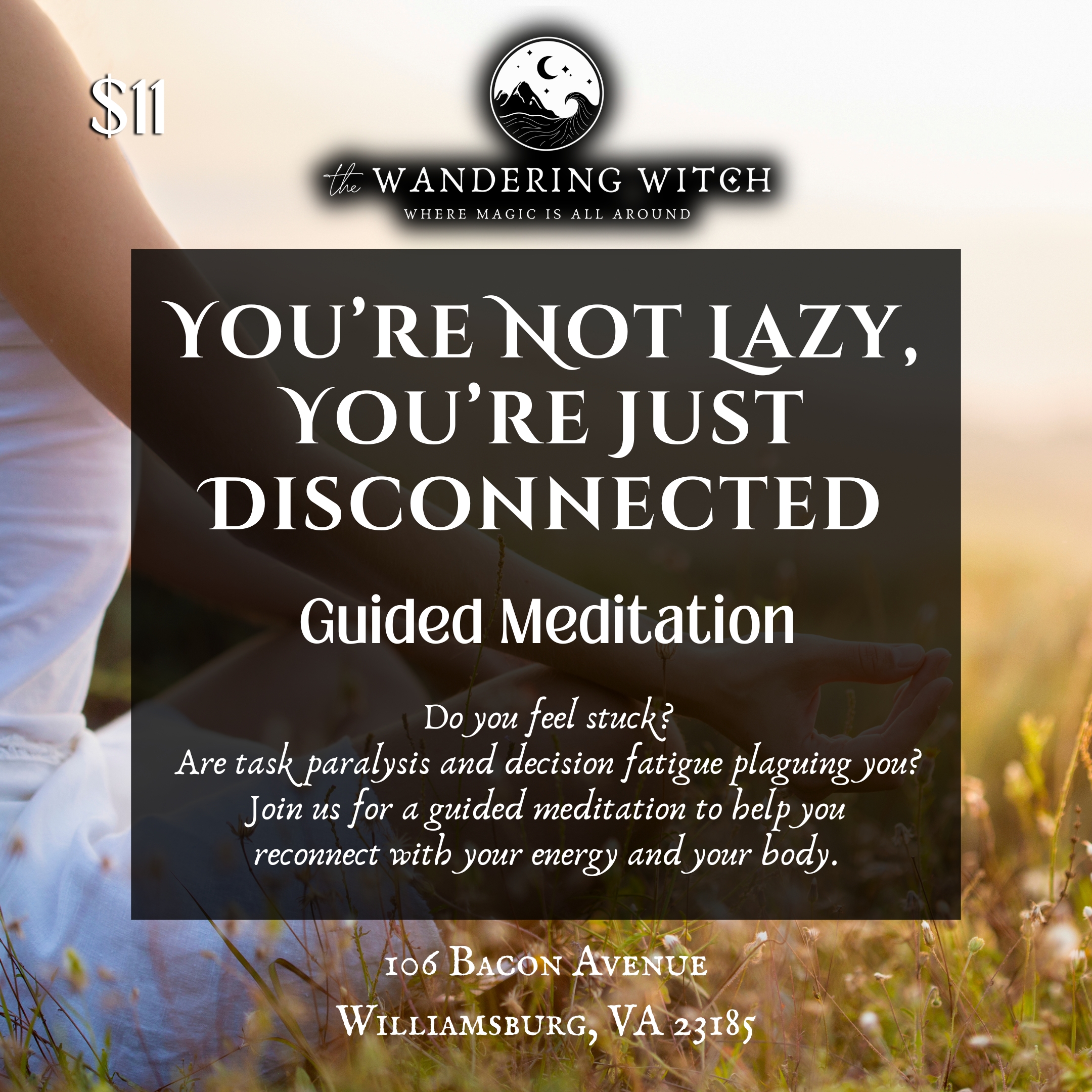 You're Not Lazy, You're Just Disconnected is a guided meditation experience designed to do exactly that: gently help you return to yourself, clear the static, and remember what it feels like to be present in your own body and your own life.
